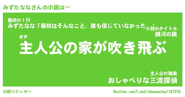 | 胡散臭い通販商品みたいなあだ名 | 『必ず成功するブレスレット…その名も「みずたなな」』 |