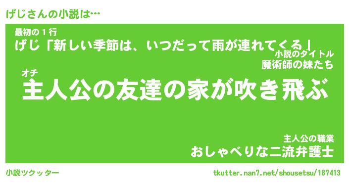 | 男性向けラノベタイトル風あだ名 | 『げじの憂鬱』 |