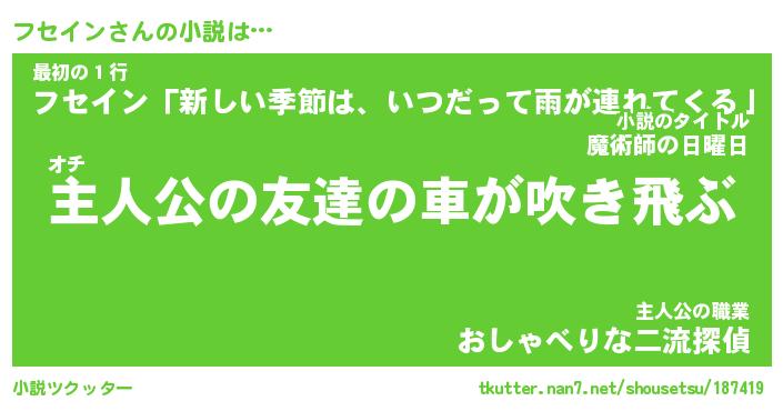 | 魚たちの銀の雨WW …「ケモノ」 | 10月27日 05:47 |