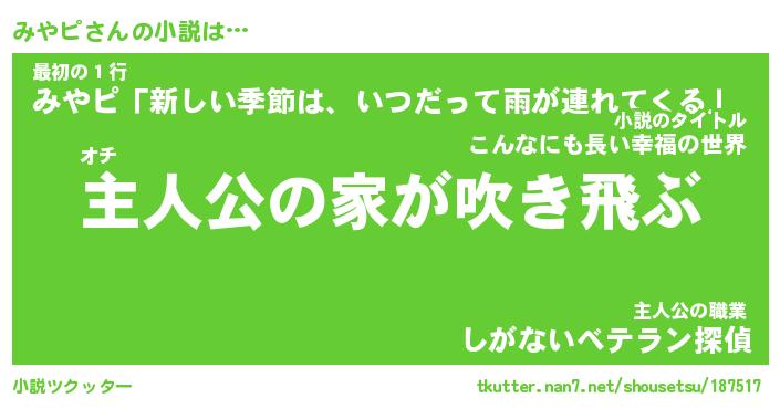 | 胡散臭い通販商品みたいなあだ名 | 『必ず成功する霊験あらたかなお札…その名も「みやピ」』 |