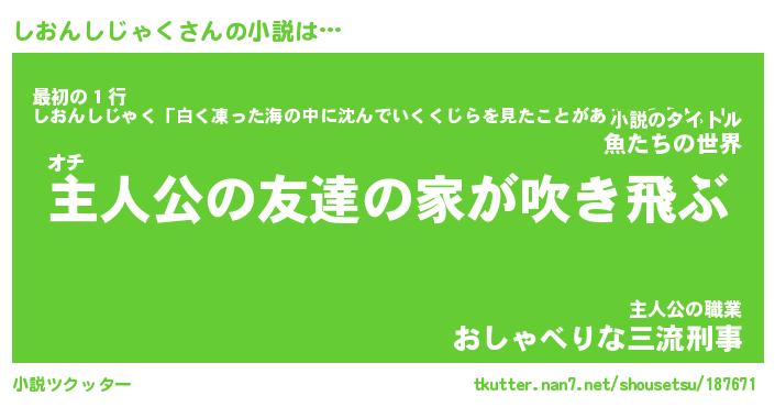 | 魚たちの銀の雨WW …「ケモノ」 | 10月27日 05:47 |