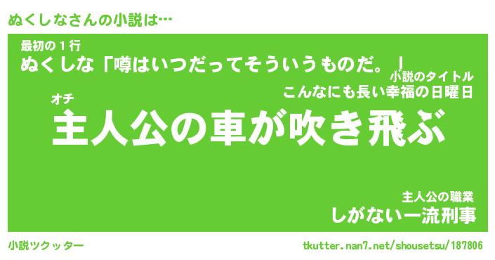 | 男性向けラノベタイトル風あだ名 | 『ぬくしなの憂鬱』 |