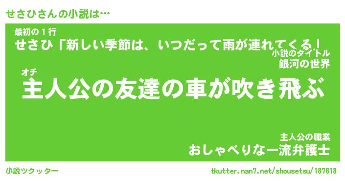 | 魚たちの銀の雨WW …「ケモノ」 | 10月27日 05:47 |