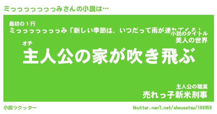 | 男性向けラノベタイトル風あだ名 | 『ミっっっっっっっみの憂鬱』 |