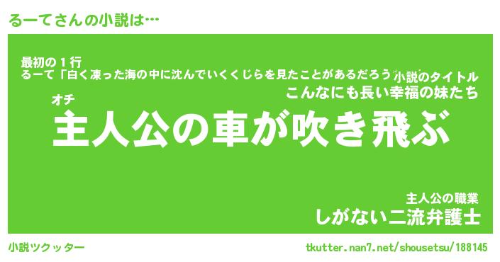 | 胡散臭い通販商品みたいなあだ名 | 『必ず成功するブレスレット…その名も「るーて」』 |