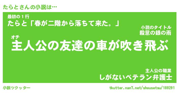 | 魚たちの銀の雨WW …「ケモノ」 | 10月27日 05:47 |