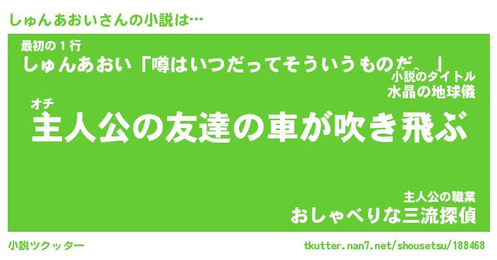 | 胡散臭い通販商品みたいなあだ名 | 『モテモテ間違いなし水晶球…その名も「しゅんあおい」』 |