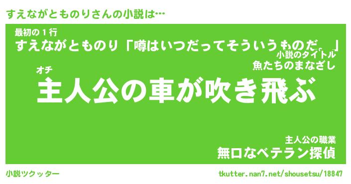 | 男性向けラノベタイトル風あだ名 | 『すえながとものりの憂鬱』 |