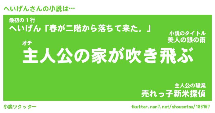 | 胡散臭い通販商品みたいなあだ名 | 『必ず成功するブレスレット…その名も「へいげん」』 |