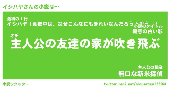 | 男性向けラノベタイトル風あだ名 | 『イシハヤの憂鬱』 |