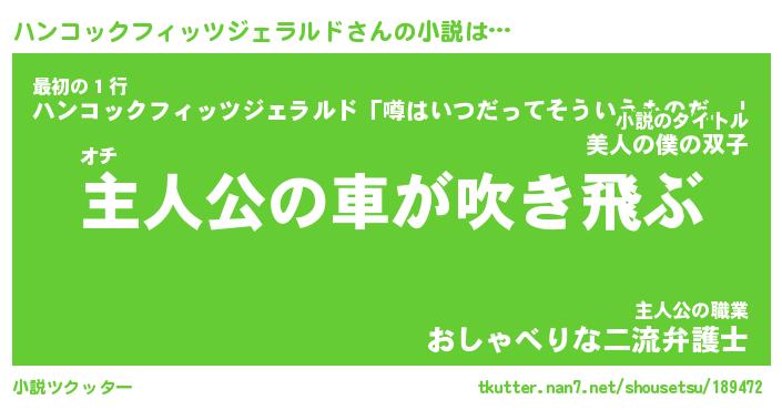 | 男性向けラノベタイトル風あだ名 | 『ハンコックフィッツジェラルドの憂鬱』 |