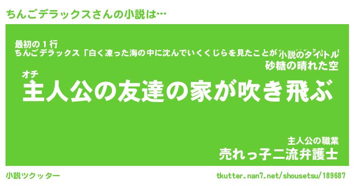 | 男性向けラノベタイトル風あだ名 | 『ちんごデラックスの憂鬱』 |