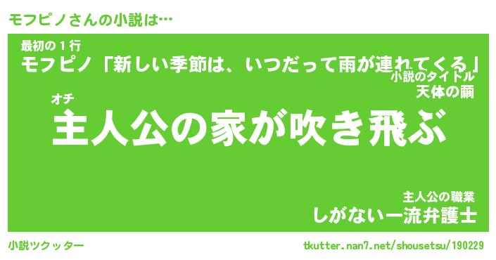 | 男性向けラノベタイトル風あだ名 | 『モフピノの憂鬱』 |