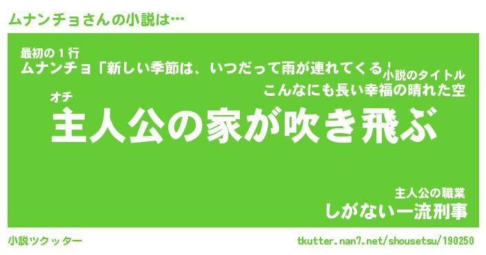 | 男性向けラノベタイトル風あだ名 | 『ムナンチョの憂鬱』 |