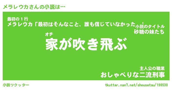| 胡散臭い通販商品みたいなあだ名 | 『必ず成功する霊験あらたかなお札…その名も「メラレウカ」』 |