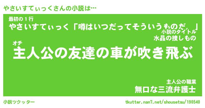 | 胡散臭い通販商品みたいなあだ名 | 『モテモテ間違いなし霊験あらたかなお札…その名も「やさいすてぃっく」』 |