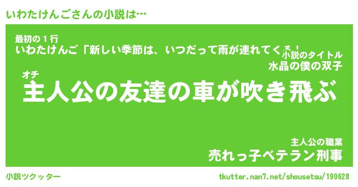 | 胡散臭い通販商品みたいなあだ名 | 『億万長者になれるブレスレット…その名も「いわたけんご」』 |