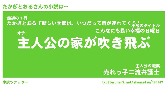| 男性向けラノベタイトル風あだ名 | 『たかぎとおるの憂鬱』 |