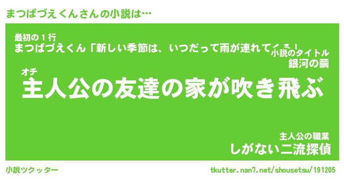 | 男性向けラノベタイトル風あだ名 | 『まつばづえくんの憂鬱』 |