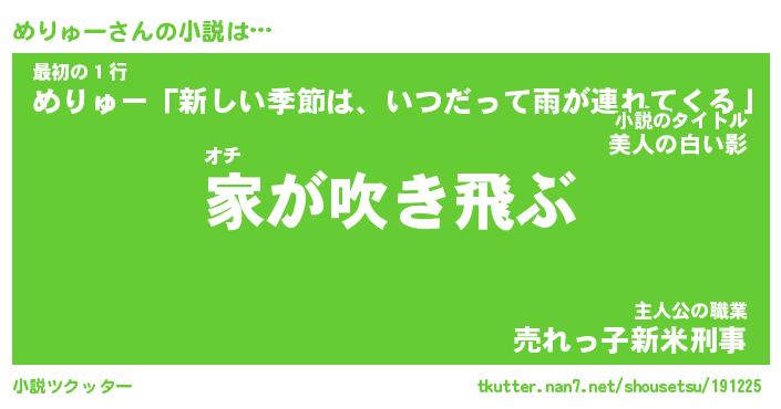 | 男性向けラノベタイトル風あだ名 | 『めりゅーの憂鬱』 |