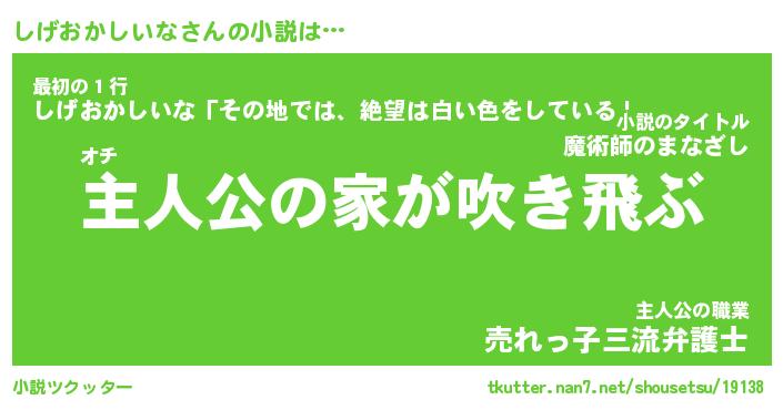 | 男性向けラノベタイトル風あだ名 | 『しげおかしいなの憂鬱』 |