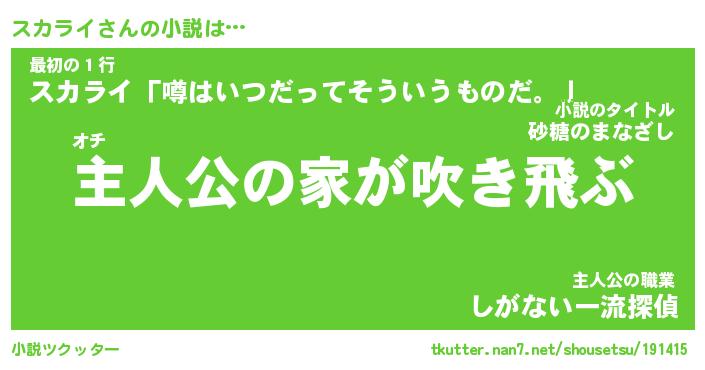 | 2回繰り返すあだ名 | 『スカスカ』『ススカカ』『うずうず』 |