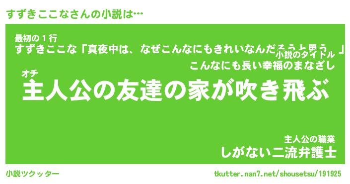 | 男性向けラノベタイトル風あだ名 | 『スズキココナアートオンライン』 |