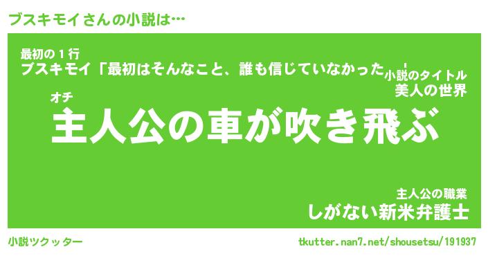| 男性向けラノベタイトル風あだ名 | 『ブスキモイの憂鬱』 |