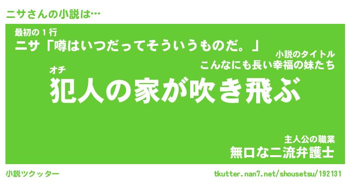 | 胡散臭い通販商品みたいなあだ名 | 『億万長者になれるブレスレット…その名も「ニサ」』 |