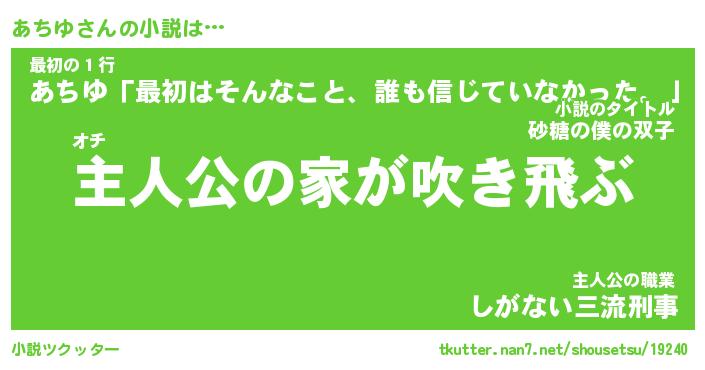 | 男性向けラノベタイトル風あだ名 | 『あちゆの憂鬱』 |