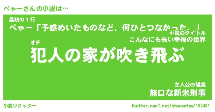 | 胡散臭い通販商品みたいなあだ名 | 『億万長者になれるブレスレット…その名も「ぺゃー」』 |