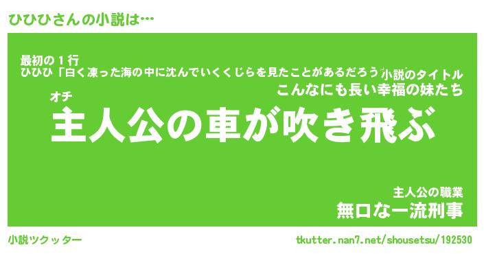| 男性向けラノベタイトル風あだ名 | 『ひひひの憂鬱』 |