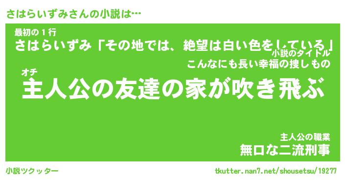 | 男性向けラノベタイトル風あだ名 | 『さはらいずみの憂鬱』 |