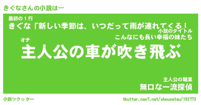 | 男性向けラノベタイトル風あだ名 | 『きぐなの憂鬱』 |