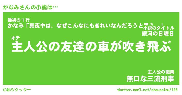 | 魚たちの銀の雨WW …「ケモノ」 | 10月27日 05:47 |
