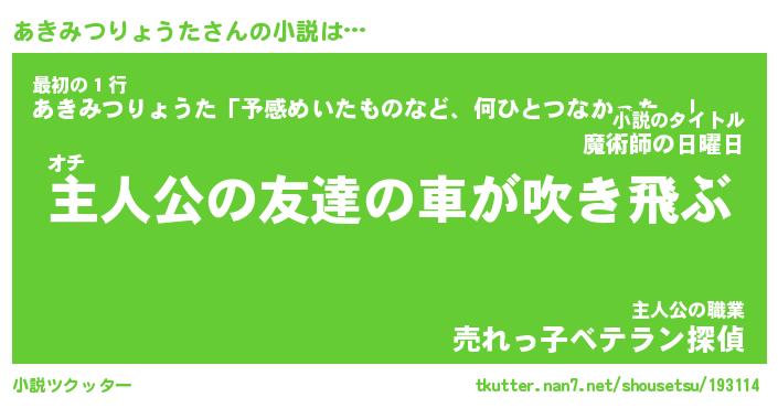 | 胡散臭い通販商品みたいなあだ名 | 『モテモテ間違いなし霊験あらたかなお札…その名も「あきみつりょうた」』 |