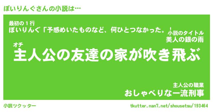 | 魚たちの銀の雨WW …「ケモノ」 | 10月27日 05:47 |