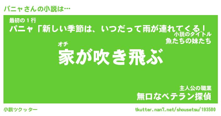| 男性向けラノベタイトル風あだ名 | 『パニャの憂鬱』 |