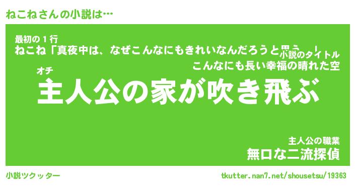 | 男性向けラノベタイトル風あだ名 | 『ねこねの憂鬱』 |