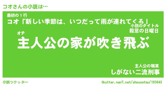 | 魚たちの銀の雨WW …「ケモノ」 | 10月27日 05:47 |