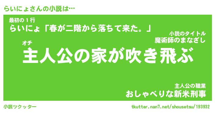 | 胡散臭い通販商品みたいなあだ名 | 『必ず成功するブレスレット…その名も「らいにょ」』 |