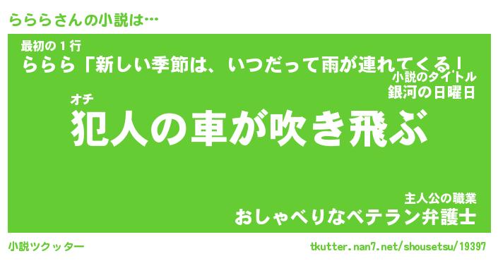 | 魚たちの銀の雨WW …「ケモノ」 | 10月27日 05:47 |