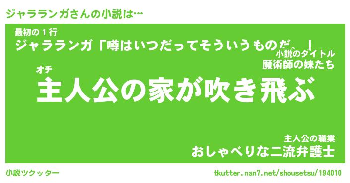 | 胡散臭い通販商品みたいなあだ名 | 『必ず成功する霊験あらたかなお札…その名も「ジャラランガ」』 |