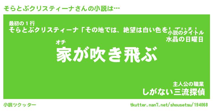 | 男性向けラノベタイトル風あだ名 | 『そらとぶクリスティーナの憂鬱』 |