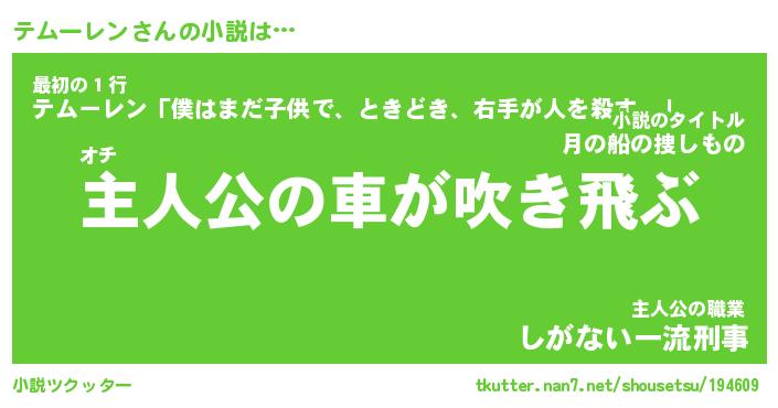 | 男性向けラノベタイトル風あだ名 | 『テムーレンの憂鬱』 |
