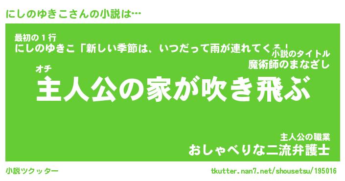 | 肩書あだ名 | 『にしのゆきこ御曹司』 |