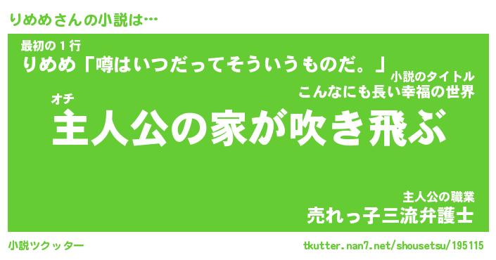 | 男性向けラノベタイトル風あだ名 | 『りめめの憂鬱』 |