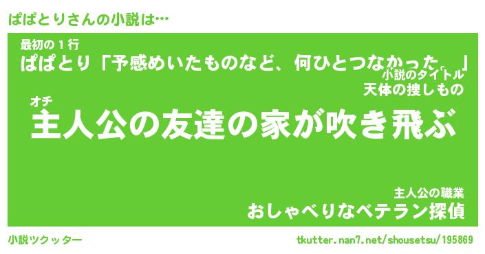| 男性向けラノベタイトル風あだ名 | 『ぱぱとりの憂鬱』 |