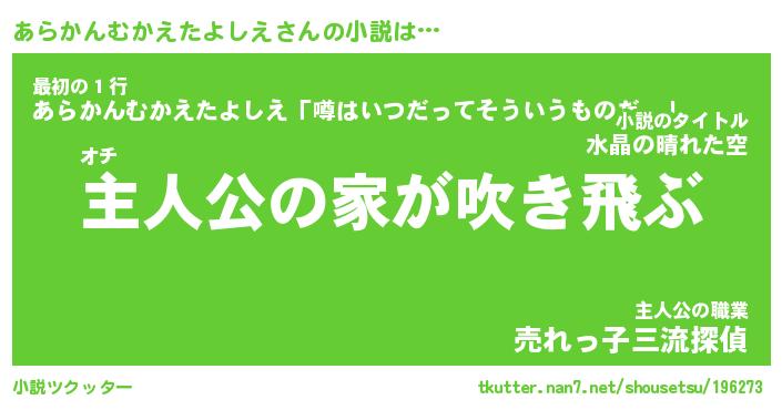 | 男性向けラノベタイトル風あだ名 | 『あらかんむかえたよしえの憂鬱』 |