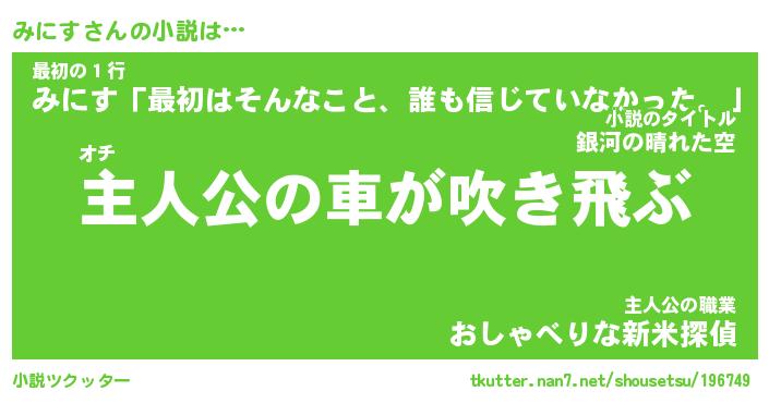 | 男性向けラノベタイトル風あだ名 | 『みにすの憂鬱』 |